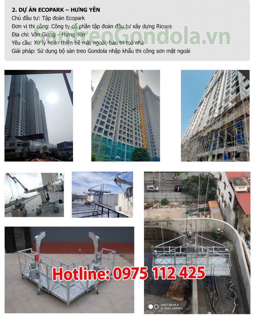 Các dự án khách hàng thuê sàn treo Gondola tại Dong Feng