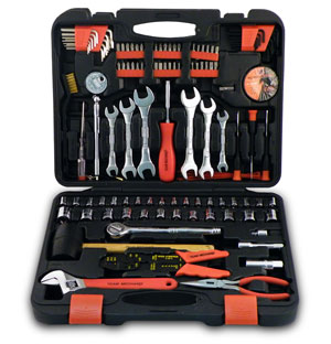 Thợ lắp máy có đủ trang phục bảo hộ và có các dụng cụ lao động cần thiết gồm: